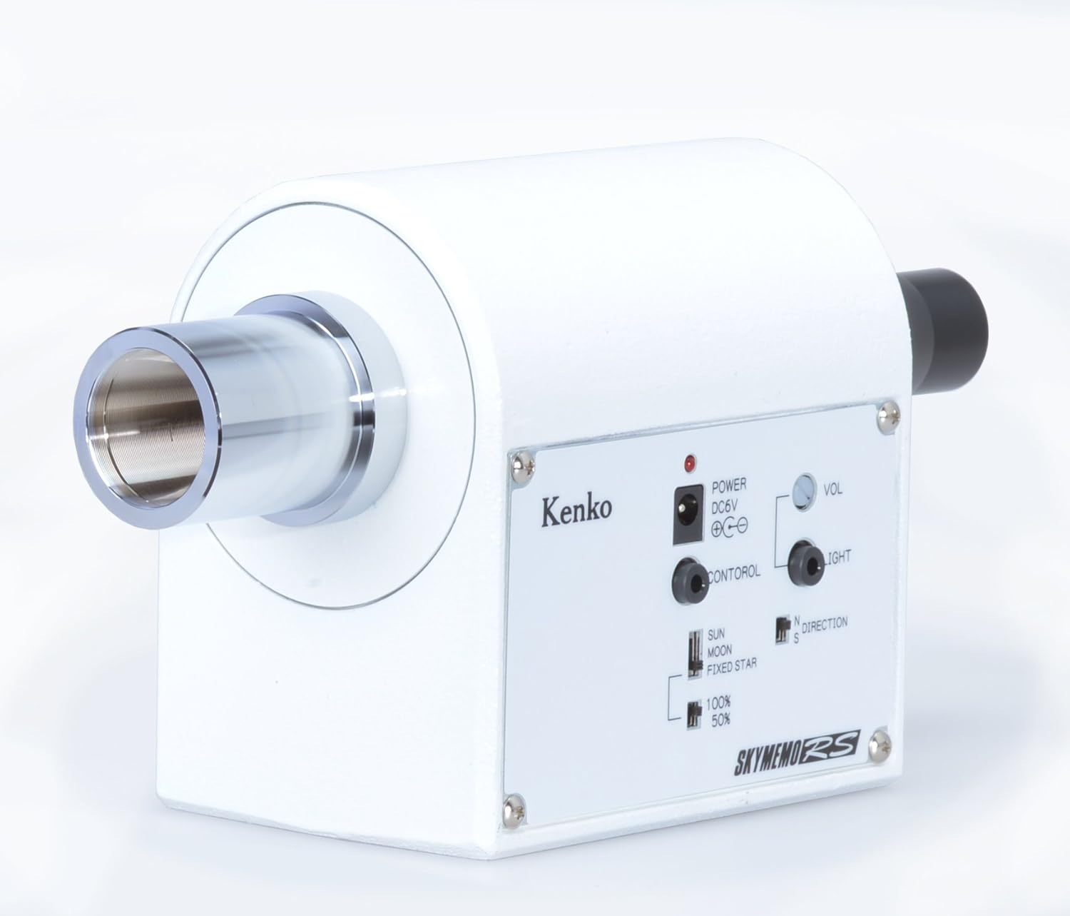 そもそも赤道儀とは、天体観測を行なう際に望遠鏡が星を視野から外さないように追いかけるために作られたものであり、その望遠鏡にカメラを取り付け天体観測を目的とした撮影を行なうことが主な目的であった。今回とりあげるポータブル赤道儀「 ケンコースカイメモ RS 」は、カメラでの天体撮影に用途を絞った赤道儀である。従来の赤道儀は大きな天体望遠鏡を載せる必要があるため、積載荷重が大きく設定されていたことで赤道儀も頑丈で重く大きいものであった。それを積載荷重を5kgまでとしたことで赤道儀としては持ち運びしやすい大きさと質量となっている。