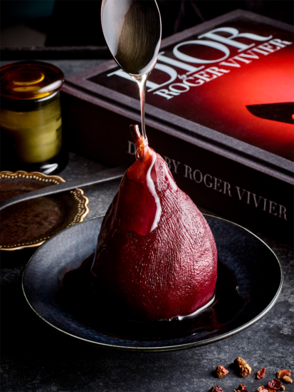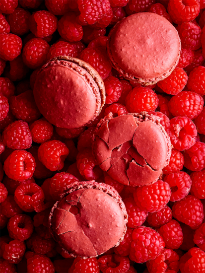 シロップをまとった果実の艶やかな光沢、スプーンから流れ落ちるソースの一瞬の輝き、ラズベリーの粒に宿る生命力、マカロンの繊細な割れ目。目を引く一枚には、確かな技術と感性の裏付けがあります。